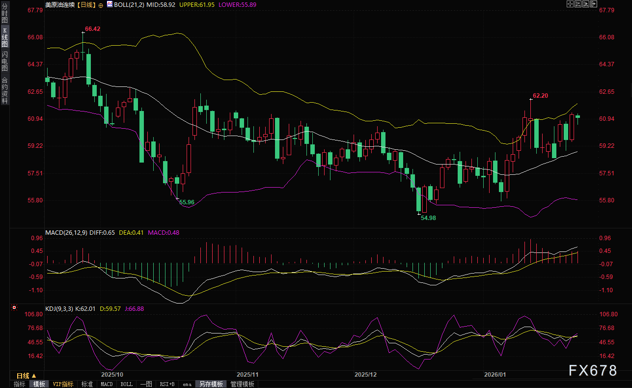 汇通财经APP讯——周二(1月20日),布伦特原油欧洲时段交投64.00美元/桶附近。过去一段行情先从58.69美元低点快速拉升,随后在66.79美元附近冲高回落,价格重新回到前期密集成交区,市场进入...