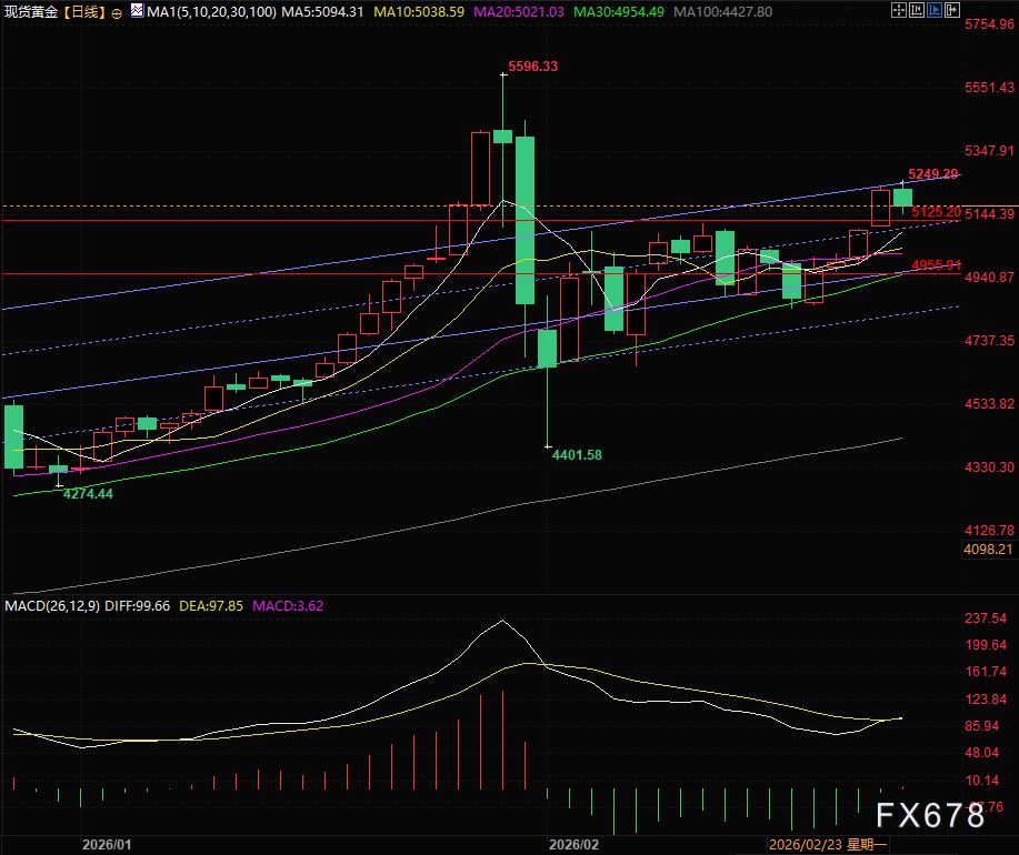 汇通财经APP讯——周二(2月24日)亚欧时段,现货黄金开盘小幅上冲创出近期新高后,亚洲资金选择获利了结手里的多头头寸,金价展开回调,目前交投于5172附近,正如昨天文章所说目前市场处在利好兑现的阶段。