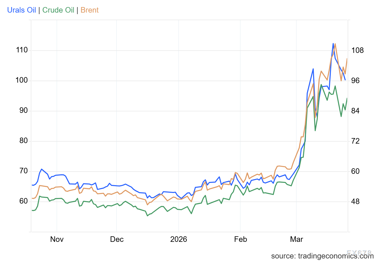 汇通财经APP讯——周四(3月26日),全球原油市场在剧烈波动中展现出多维博弈态势。随着地缘局势演变,情绪在供应中断风险与通胀压力间反复切换。盘面显示,布伦特与WTI在极端拉升后进入高位震荡逻辑重塑期。本月油价涨幅超50%,重创黄金等避险资产,市场焦点已从单一价格波动转向价差结构分析。