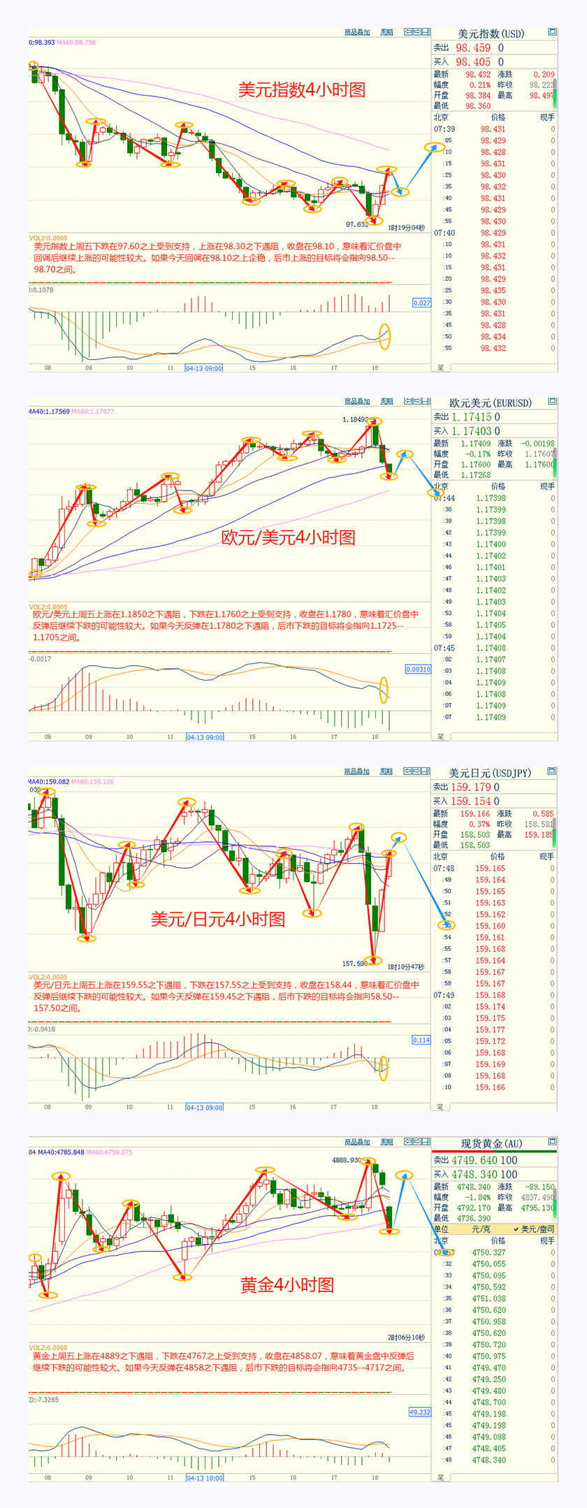 美元指数上周五下跌0.3%至97.96,盘中触及七周低位97.632,连续第二周收跌。伊朗宣布在停火期间对所有商船开放海峡,美伊谈判取得进展,油价暴跌逾10%,美股大涨,美债收益率走低。