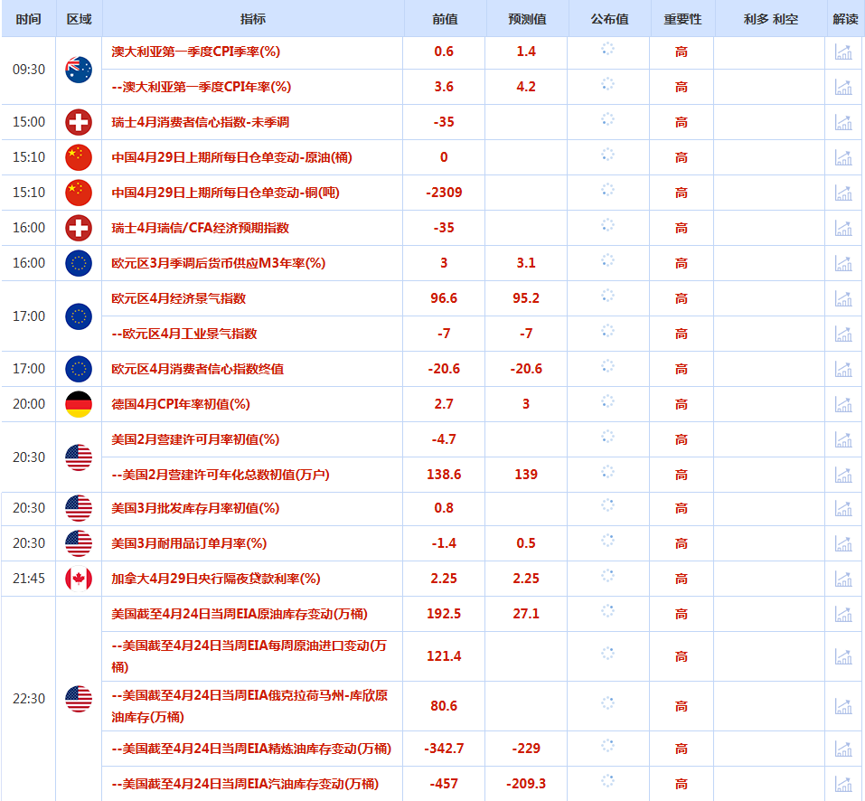 美联储FOMC公布利率决议 本周四凌晨两点,美联储FOMC将公布四月末的利率决议结果,主流预期认为美联储将维持3.5%到3.75%的联邦基金利率区间不变。 src=http://fxstg.pic....