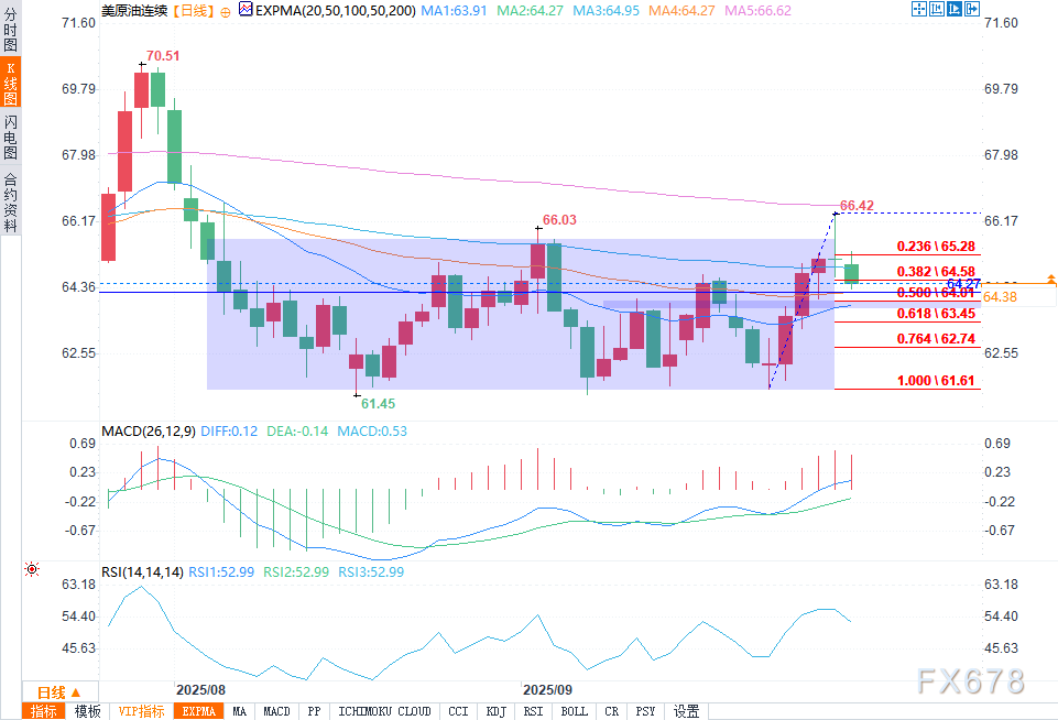 汇通财经APP讯——周一(9月29日)欧洲交易时段,WTI原油期货价格下滑,从66.42美元的七周新高回落。交易员称,此举源于市场对全球原油供应增长的担忧加剧——伊拉克库尔德地区恢复原油出口,且市场预期欧佩克+将进一步增产,均对市场情绪构成压力。