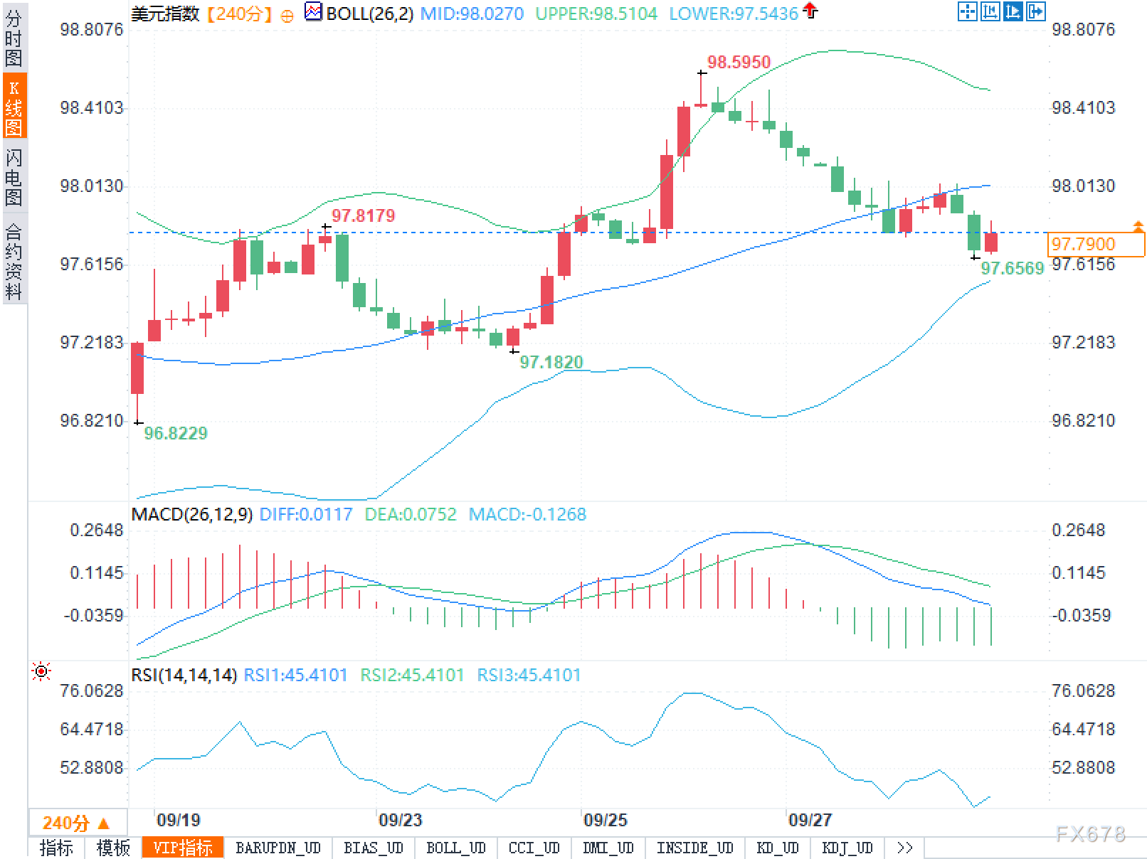 汇通财经APP讯——周二(9月30日),美元指数北美时段在98下方徘徊,日内呈“高开回落—弱势横盘”,与前一交易日的温和下行相呼应。当前时点叠加数据密集期:JOLTS职位空缺将在今晚22:00公布,后面焦点则转向非农。