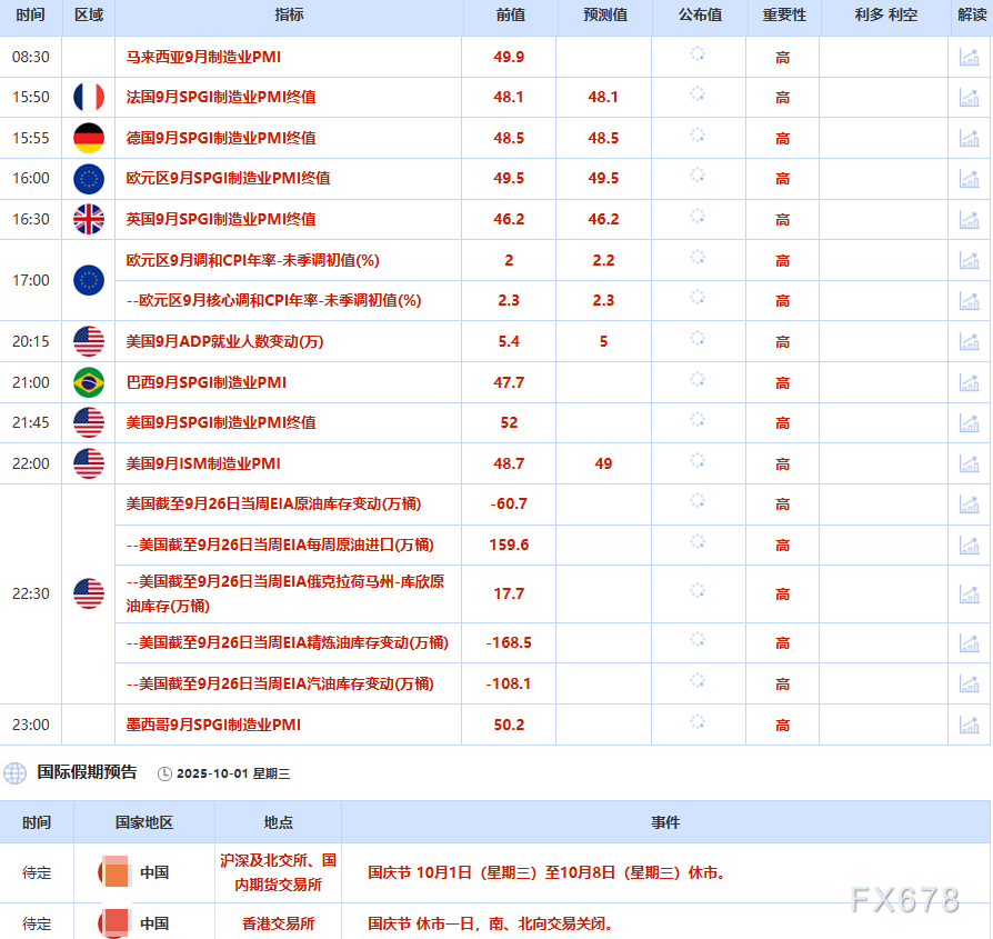 汇通财经APP讯——周三(北京时间10月1日),现货黄金交投于3860美元/盎司附近,金价周二一度创下3871.61美元的纪录新高,投资者担忧美国政府即将停摆,且不佳就业数据强化了对美联储的降息预期。9月黄金上涨 11.9%,创下2011年 8月以来的最大月线涨幅,季度上涨16.82%;美原油交投于62.50美元/桶附近,油价周二收低,投资者担心供应过剩,OPEC+可能计划11月大幅提高石油产量,且伊拉克库尔德斯坦通过土耳其的石油出口恢复。