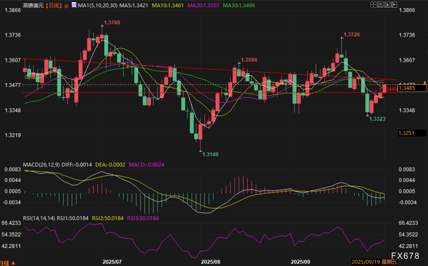 汇通财经APP讯——周三(10月1日),英镑兑美元欧洲时段延续本周反弹态势,涨0.29%。受美国政府停摆后美元走弱推动,英镑对美元汇率攀升至1.3480附近水平,目前交投于1.3482附近。英国央行官员布雷登就经济风险发出警示,并提出降息主张。值得注意的,今天欧洲发布了相当强力的制造业PMI数据,德、法、欧元区的制造业PMI均好于预期,但是欧元兑美元却走出冲高回落,收跌的走势。同时英镑兑美元持续反弹导致虽然英国PMI不及欧元区各国耀眼仅仅是符合预期,但是英镑兑欧元却在升值。