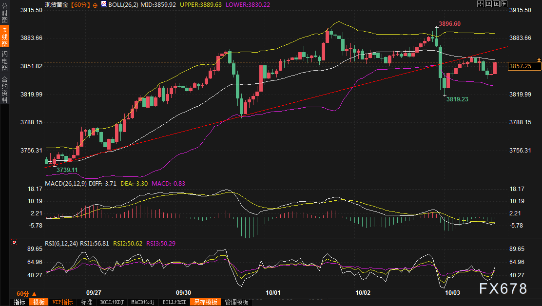 10月03日 14:45汇通财经APP讯——金价在周四晚间从3820美元区域反弹后,周五(10月4日)未能延续涨势,并在周五亚洲时段吸引了一些卖家,现货黄金一度跌至3837.97美元/盎司附近,目前收复大部分跌幅,交投于38...