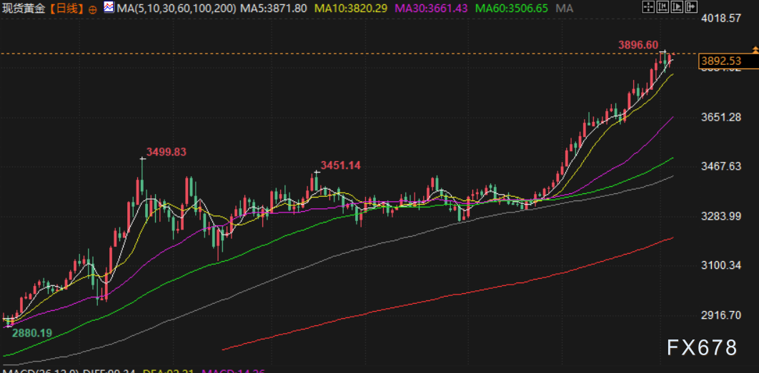 现货金上涨0.7%,至每盎司3884.19美元,上周四曾触及3896.49美元的历史高点。12月美国期金收涨逾 1%,报每盎司 3908.9 美元。