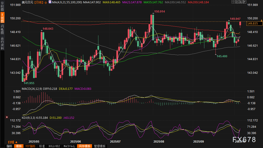 汇通财经APP讯——周一(10月6日)亚洲交易时段,美元/日元汇率强势上扬,一度触及149.86的高位,这不仅标志着日元对美元的显著贬值,还创下了五个月来最大单日跌幅。背后的推手,正是日本执政党自民党新任主席高市早苗的意外胜出。她作为潜在的日本首位女首相,其扩张性财政政策倾向引发市场对日本央行加息计划的强烈质疑,同时叠加美国政府停摆的不确定性,让日元面临前所未有的压力。