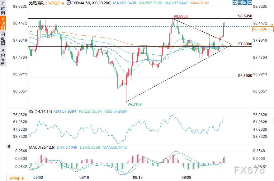汇通财经APP讯——周一(10月6日)欧洲交易时段,美元指数小幅走高,在98.37附近波动。尽管谨慎情绪为其提供支撑,但市场对进一步降息的预期升温,且美国政府停摆引发的不确定性,共同限制了美元的涨幅。