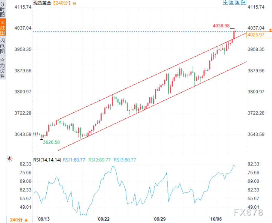 汇通财经APP讯——现货黄金延续近期破纪录涨势,周三(10月8日)成功站稳4000美元/盎司大关并延续上行动能,一度创下了4036.98美元/盎司的新记录。美国政府停摆加剧经济不确定性,叠加市场对美联储进一步降息预期升温,正成为推动资金涌入避险黄金的关键动力。