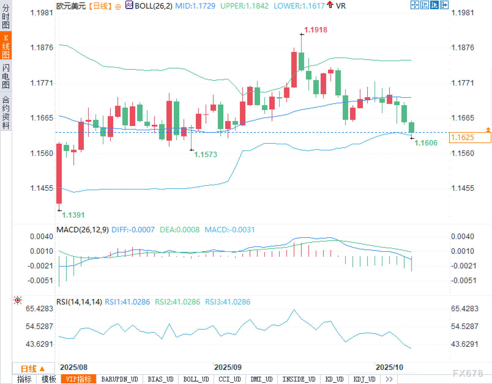 汇通财经APP讯——周三(10月8日),欧元兑美元延续三连跌并刷新自9月初以来低位区间,欧洲时段交投1.16上方。行情主因来自两端:欧洲方面,法国政治与财政不确定性升温;美国方面,联邦政府停摆进入第二周,参院两党尚无重启方案。避险偏好提升令美元获益,风险资产整体承压,欧元兑美元短线被动下行。