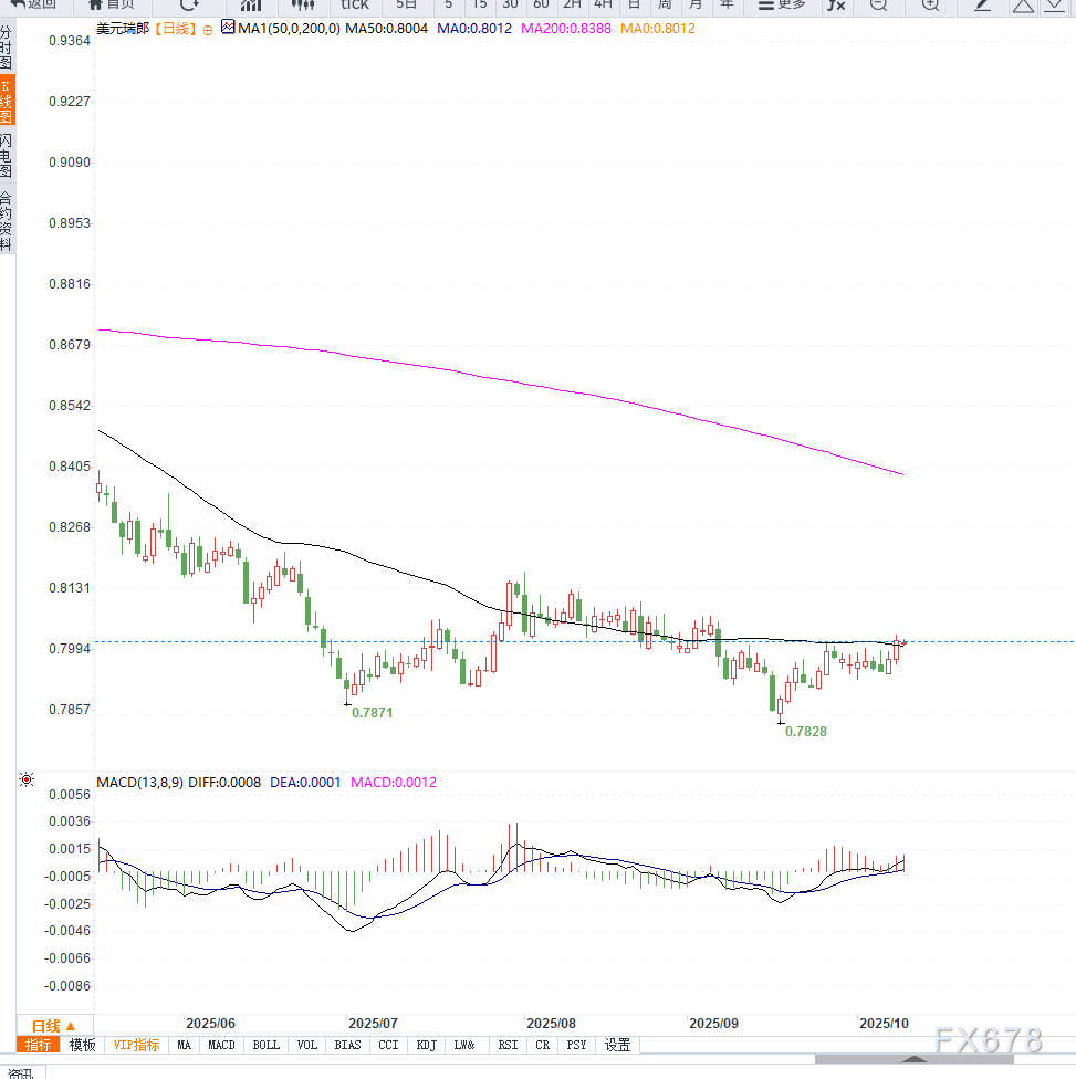 汇通财经APP讯——USD/CHF在周四亚盘时段自月内高点0.8030回落至0.8000附近,美元走势承压。