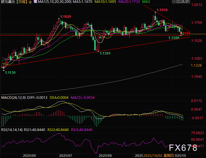 10月09日 19:53汇通财经APP讯——周四(10月9日)欧洲时段,欧元兑美元延续此前三日的弱势,现交投于1.16上方。汇价自周内高位回撤后持续承压,近端技术结构尚未出现反转信号,短线风险倾向仍偏向下行。基本面层面,美元...