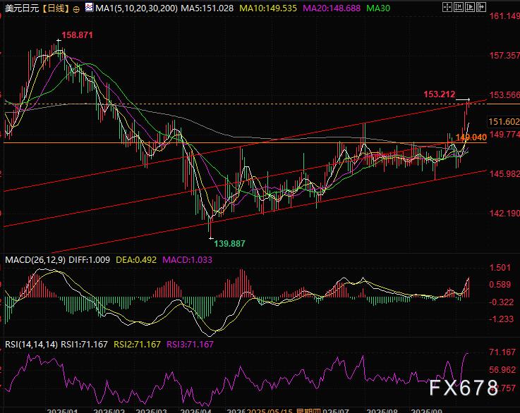 4日高市早苗当选自民党(LDP)新总裁后,在对被称为“高市经济学”(SanAEconomics)的高市早苗经济政策的猜测推动下,“高市交易”(卖出日元、卖出日本国债、买入日本股票)将美元兑日元推升至153.00日元。