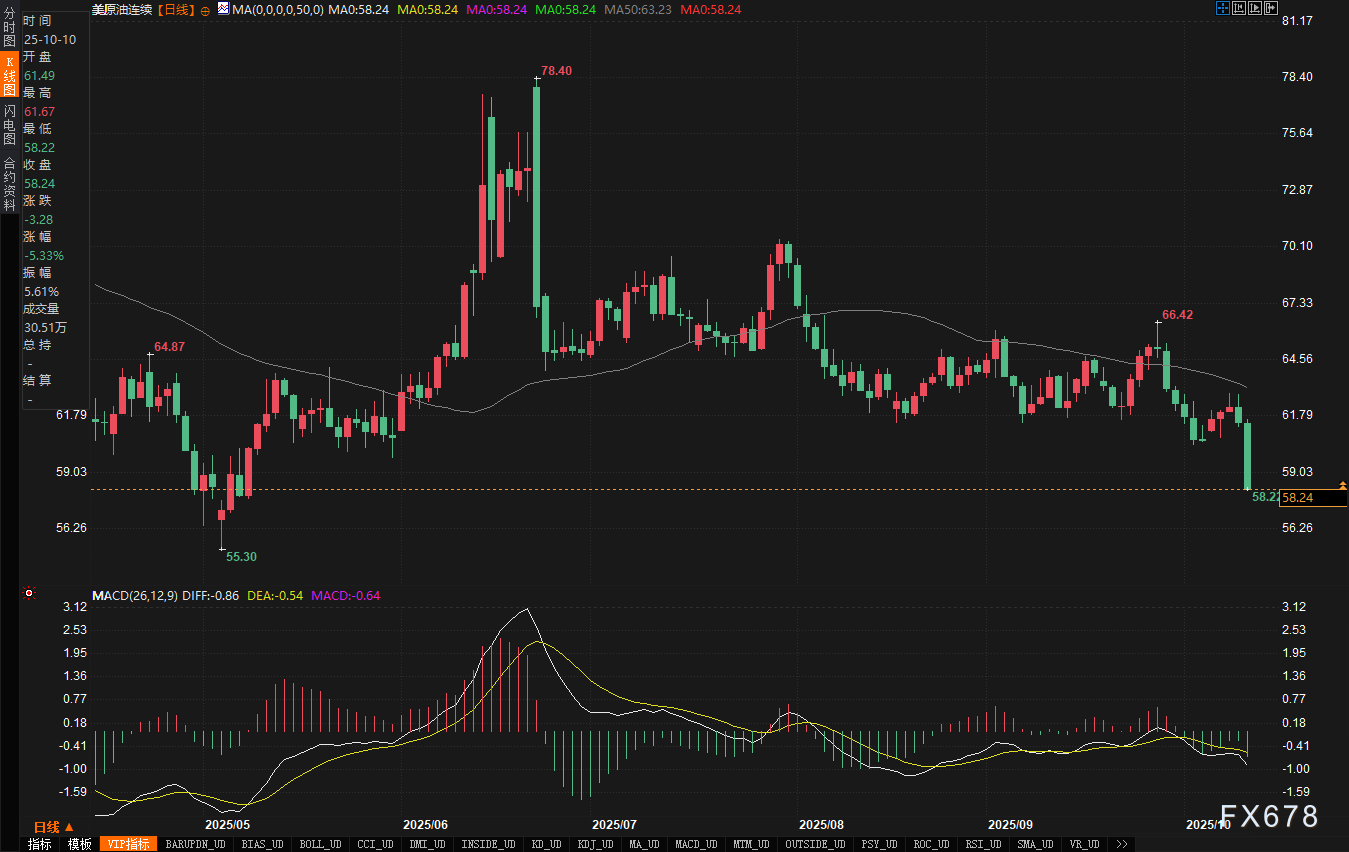 10月11日 09:30汇通财经APP讯——周五(10月10日)欧盘时段,WTI原油期货价格走低,抹去本周早些时候的涨幅,使市场单周表现陷入负值区间。油价已形成62.92美元的新一轮“摇摆顶部”(短期高点)。 src=htt...