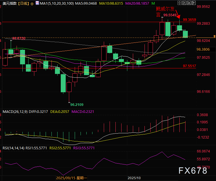 10月15日 14:55汇通财经APP讯——美元指数(DXY)在亚洲时段继续回落,延续前一交易日的弱势表现。目前指数已跌破99.00关口,为连续第二天走低。市场普遍认为,美联储将在10月与12月分别降息25个基点,以应对经济...