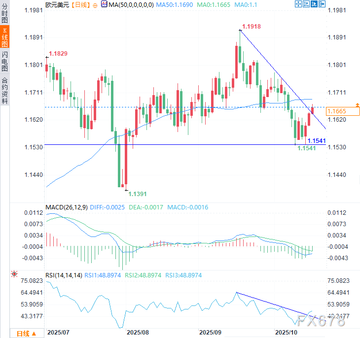汇通财经APP讯——周四(10月16日)欧元兑美元第三个交易日上涨,目前交投于1.1663附近,涨幅约0.15%,此前曾创下一周新高至1.1674,美联储主席鲍威尔的讲话强化了市场对美联储本月再次降息的预期,欧元兑美元随后显著上行。在后续数据清淡的背景下,美联储官员的讲话可能成为下一个方向性催化剂。