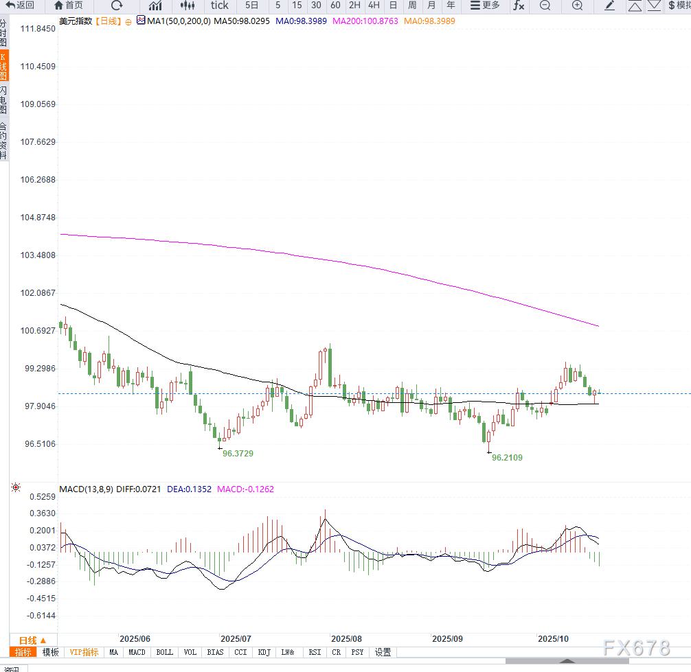 汇通财经APP讯——周一亚洲早盘,美元指数(DXY)小幅回落至约 98.40,延续上周涨幅的回撤。美元近期承压主要受美国政府关门拖延和美联储潜在降息影响。