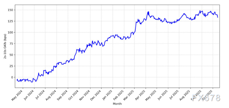 10年期法国国债与德国国债收益率之差的变化反映了市场对法国相对于德国财政风险的看法转变,而法国收益率曲线本身的变动则揭示了投资者对短期和长期风险平衡的预期。衡量经济与财政短期预期相对于长期预期的关键指标是2年期与10年期收益率曲线。收益率曲线趋陡可能反映对经济走强、利率上升及通胀高企的预期,也可能暗示长期风险溢价攀升。