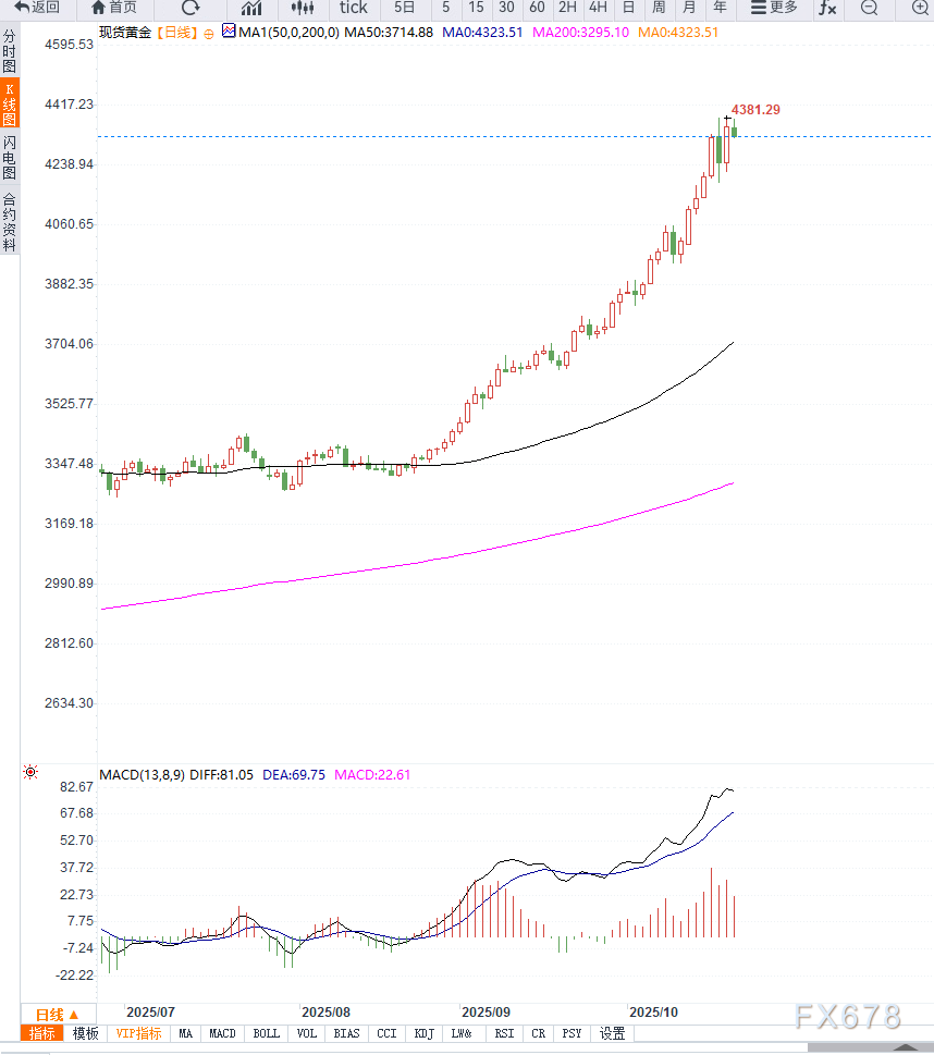 10月21日 15:05汇通财经APP讯——周二(10月21日),现货黄金从前一交易日创下的历史高点(4381.29美元/盎司)附近小幅回落,跌幅约0.8%,但在积极的基本面背景下,任何实质性下跌空间仍显有限。美元正试图延续...