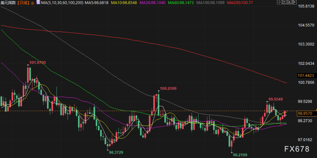 美元指数受到日元走软的支撑,升至六日高点。该指数纽约尾盘上涨 0.312%,至 98.921。