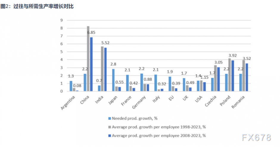 汇通财经APP讯——欧元区核心国家的“财政可持续性”是一个假象。在人口衰退的既定趋势下,维持高债务和经济增长必须依赖劳动生产率的加速提升。然而,历史数据表明,这些经济体所需的生产率增速与实际增速之间存在巨大缺口。