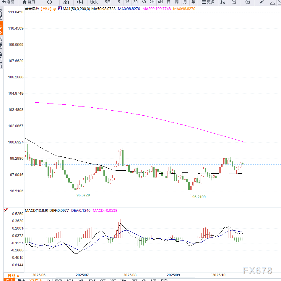 汇通财经APP讯——美元指数(DXY)在周三欧洲时段下行至约98.90,延续此前三日上涨后的承压走势。美元下跌主要受到美国政府关门及政策不确定性影响。