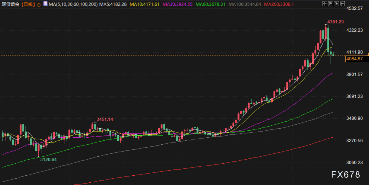 High Ridge Futures 金属交易主管 David Meger 说:"鉴于过去几周的显著上行,在周五 CPI 报告公布前出现一些获利回吐并不完全出乎我们的意料。"在技术面上,黄金在位于4005美元的21 日移动均线处得到支撑。