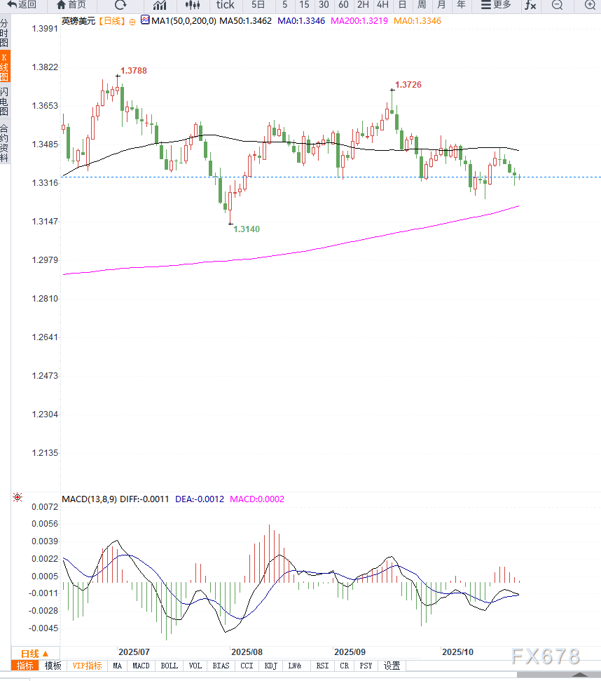 汇通财经APP讯——GBP/USD 在亚洲交易时段延续跌势,当前交投于约1.3340 附近,连续五个交易日收低。
