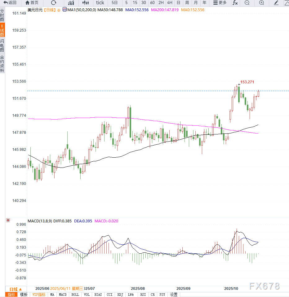 汇通财经APP讯——USD/JPY 在亚洲交易时段延续升势,当前交投于约152.50 附近。日本新任首相高市早苗被市场预期将推出大规模刺激方案,可能超过去年13.9万亿日元 的家庭通胀缓解计划,这使日元承压走弱。