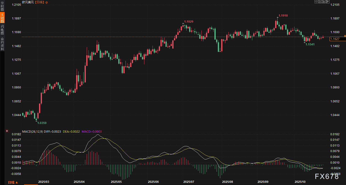 汇通财经APP讯——周五(10月24日)美市盘前,欧元兑美元围绕1.16一线横向整理。汇价数次尝试靠近并站上1.1630未果,区间特征明显;在数据与政策交织的节点上,短线趋势选择被推迟到美国通胀公布之...