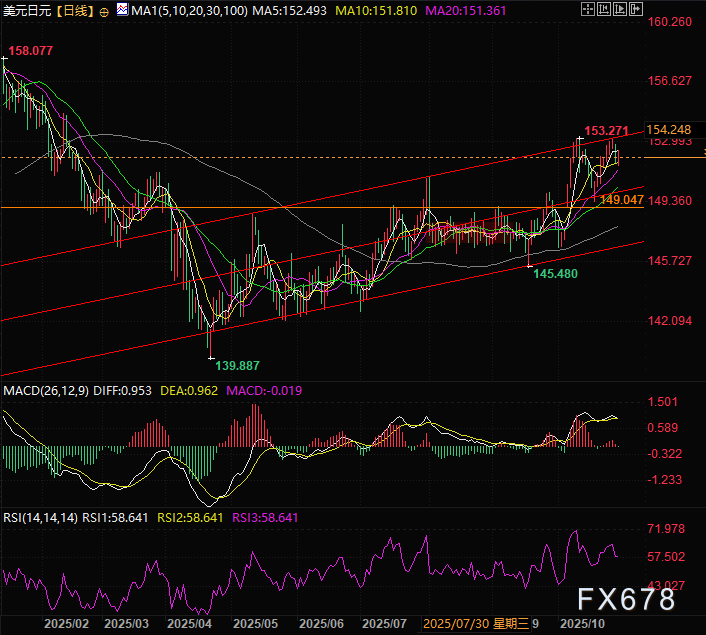 汇通财经APP讯——周三(10月29日)美元兑日元在周二下行后宽幅震荡,目前交投于152.17附近,市场在美国、日本央行即将公布利率决议之前分歧增加。美元兑日元本周触及的一周高点后出现大幅回撤。对美国干预的担忧及日本央行加息预期,或限制日元进一步贬值空间。交易员或等待美联储与日本央行决议落地后,再进行方向性交易布局。