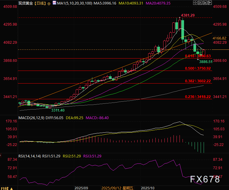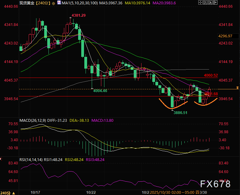 汇通财经APP讯——周四(10月30日)亚欧时段,现货黄金短暂探底后展开反弹,盘中一度下探至-0.37%,目前涨超1.5%,交投于4007美元附近,受美元指数小幅回落及避险需求回暖推动,金价重新积聚上行动能。釜山中美高层会晤成为了黄金空头获利了结的节点。