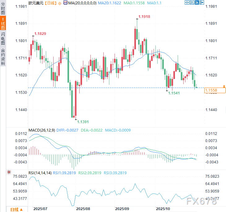 汇通财经APP讯——周五(10月31日)欧元兑美元交投于1.1560附近,市场表现谨慎。该主要货币对难以实现有效反弹,因美元在多重利好因素支撑下保持坚挺——市场对美联储鸽派立场的预期减弱,以及贸易摩擦持续改善。