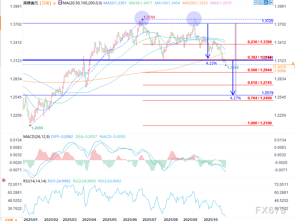 汇通财经APP讯——受美元动能持续增强影响,英镑/美元汇率在形成双顶形态后,回落至数月来的最低水平。该汇率一度跌至1.3100的低点,远低于9月创下的高点。