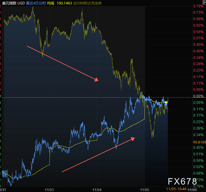 汇通财经APP讯——周三(11月5日)美元指数维持在100上方震荡,昨日美国基金大空头透露持仓以及发表看空美国科技股言论,舆论发酵使美股大跌,同时叠加共和党选举失利,使得美元获得避险买盘。