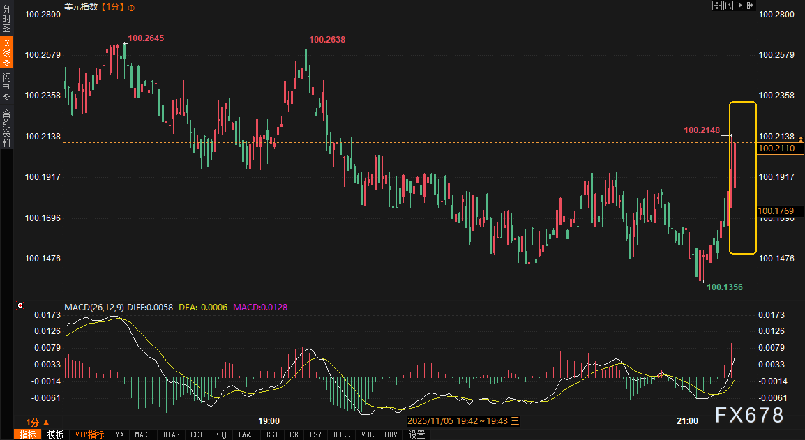 汇通财经APP讯——周三(11月5日)美元指数维持在100上方震荡,昨日美国基金大空头透露持仓以及发表看空美国科技股言论,舆论发酵使美股大跌,同时叠加共和党选举失利,使得美元获得避险买盘。美国2025...