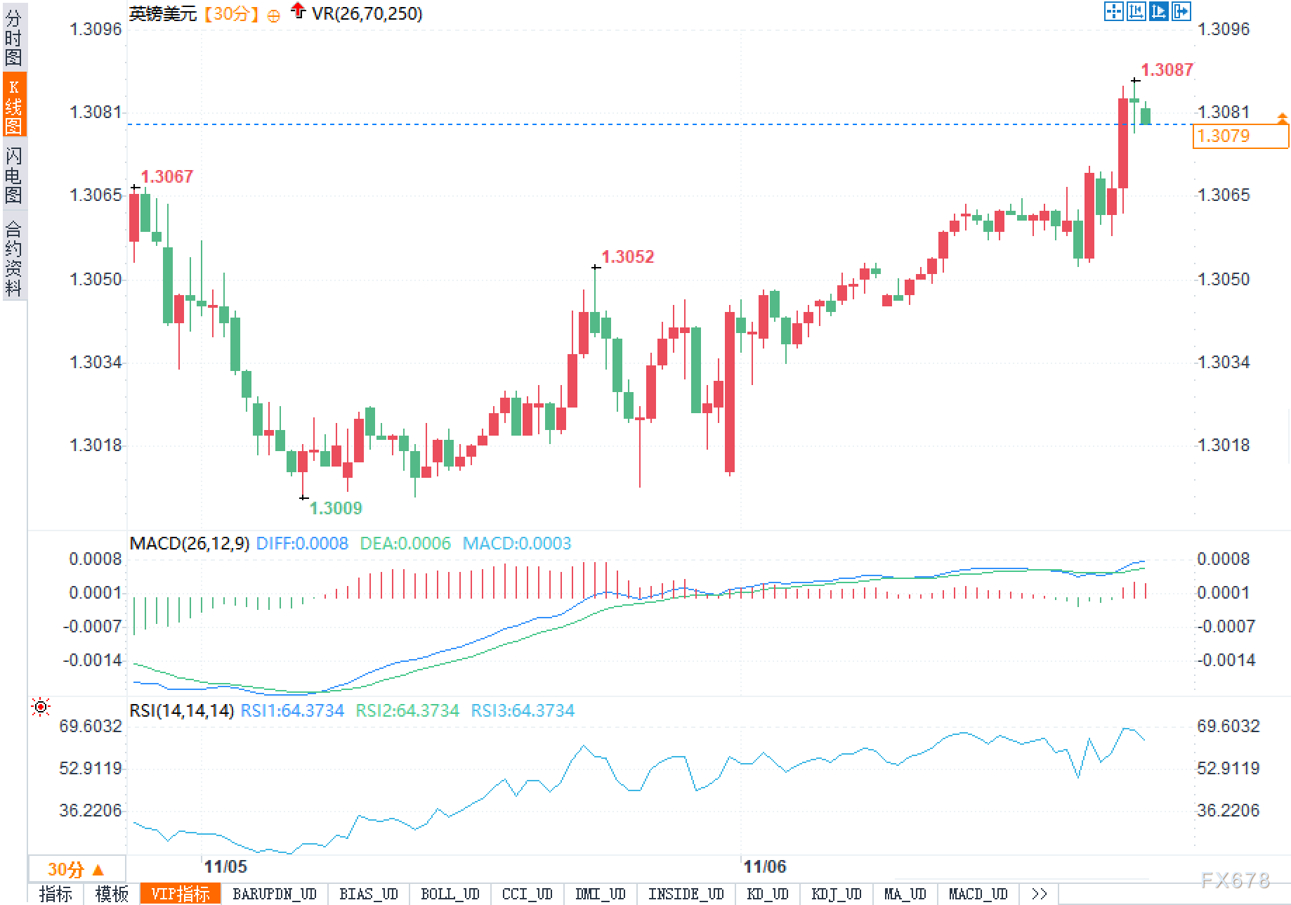汇通财经APP讯——11月6日,星期四。当前欧洲时段英镑兑美元在1.3080附近交投,延续此前一日自1.3000整数关口附近的回升势头,但市场在英国央行议息(今晚20:00)前保持观望。短期内,美元在前一日受强于预期的美国宏观数据提振后高位整理,英镑受国内通胀和财政前景夹击,风险偏好与利差预期交织,使得汇价呈现“反弹但受限”的典型事件前格局。