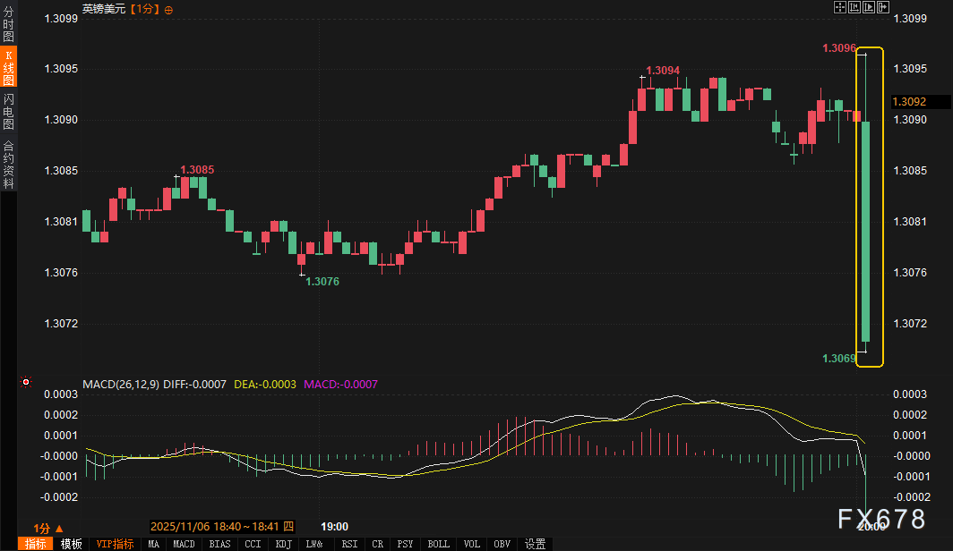 汇通财经APP讯——周四(11月6日),英镑/美元价格整体呈现震荡上行趋势。早盘以缓慢震荡攀升为主,午后出现加速上涨,随后小幅回落但仍维持在高位。这种走势反映出短期多头力量占据主导,市场买盘推动价格持...