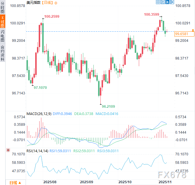 汇通财经APP讯——本周全球外汇市场风起云涌,美元指数周五(11月7日)微跌0.15%至99.56,全周累计下跌0.15%,终结了连续两周的涨势。投资者在美联储鹰派前景与美国经济隐忧之间左右为难,美元...