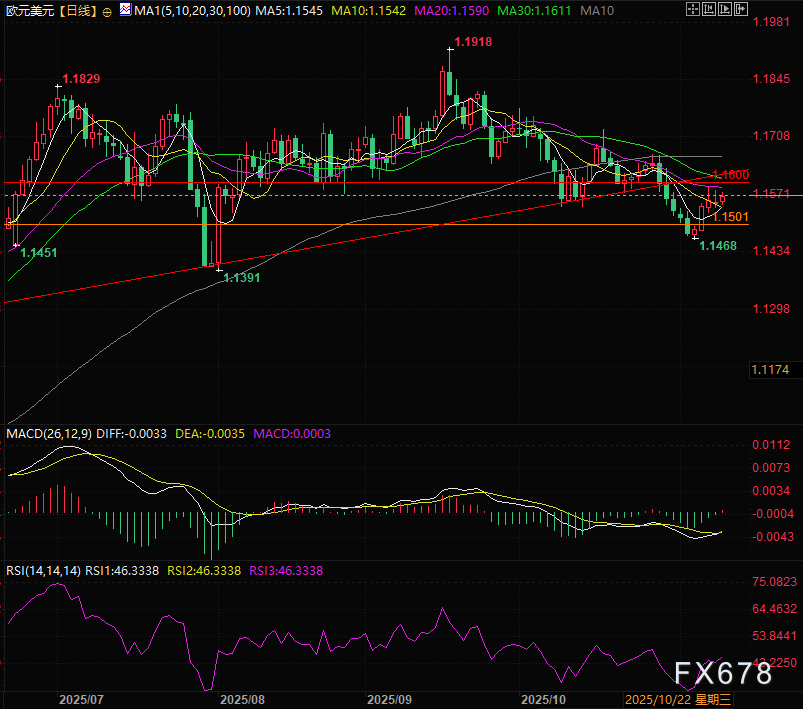 尽管德国经济景气数据表现疲软,但市场基本未予反应,受美国政府停摆解决方案达成后风险偏好温和回暖的支撑,欧元兑美元稳步上行。