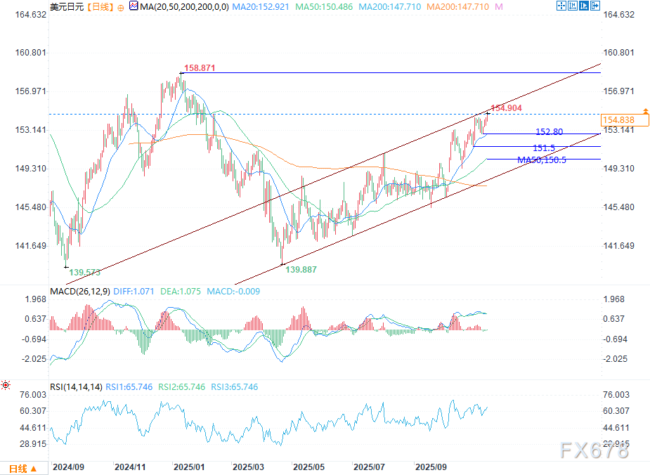 这一走势的支撑因素包括,市场预期日本当局至少暂时不会出手干预,对美联储可能在下次政策会议上降息的猜测日益升温。此外,日本央行近期鸽派表态拖累了日元,美国政府将在近期结束停摆为美元提供了支撑。