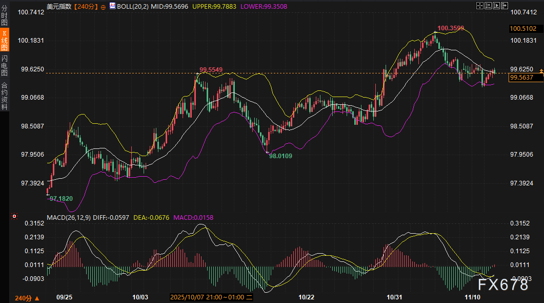 汇通财经APP讯——周三(11月12日),现货黄金价格在4130美元/盎司附近窄幅震荡,延续了三周高位附近的盘整格局。美元指数则小幅反弹,结束了此前五连跌的颓势,短暂收复部分失地。市场整体氛围趋于谨慎,交易员们将目光锁定在美国国会关键投票的进程上,这一事件或将为本周后半段的资金流动注入不确定性。与此同时,美联储内部对宽松政策的预期持续发酵,叠加劳动力市场软化信号,强化了贵金属的结构性支撑。短期内,美元的企稳与黄金的横盘共振,反映出投资者在财政与货币政策双重变量下的观望心态,预计未来2-3日走势将围绕这些核心驱动展开细微博弈。