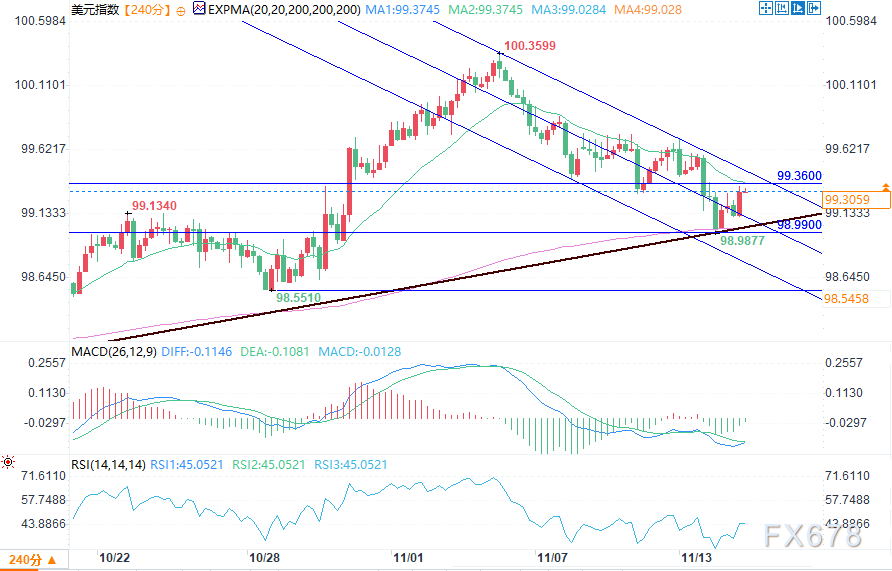 汇通财经APP讯——周五(11月14日)欧盘时段,美元指数(DXY)在经历波动的周四交易后,现报99.2727附近,勉强守住关键支撑位上方。