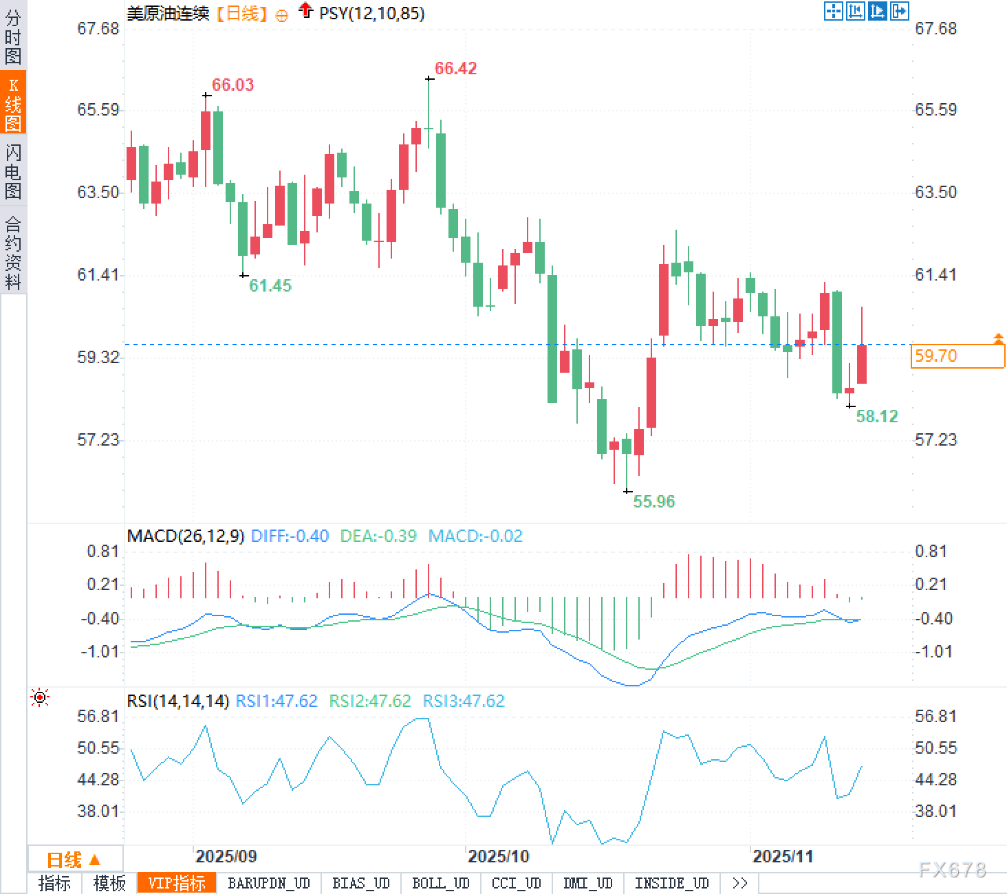 汇通财经APP讯——周五(11月14日),美原油连续合约北美时段交投于60美元附近,日内涨幅达1.80%,盘中一度触及60.65美元的日高。在经历了近期的深度回调后,油价展现出技术性反弹迹象。市场正处于地缘政治风险溢价与基本面供应过剩的激烈博弈之中,这种矛盾态势使得油价走势呈现出明显的区间振荡特征。