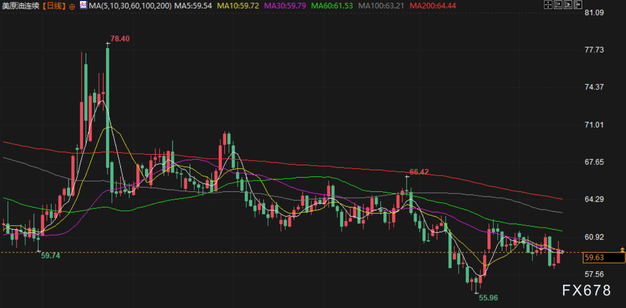 汇通财经APP讯——周五(11月14日),美原油连续合约北美时段交投于60美元附近,日内涨幅达1.80%,盘中一度触及60.65美元的日高。在经历了近期的深度回调后,油价展现出技术性反弹迹象。市场正处...