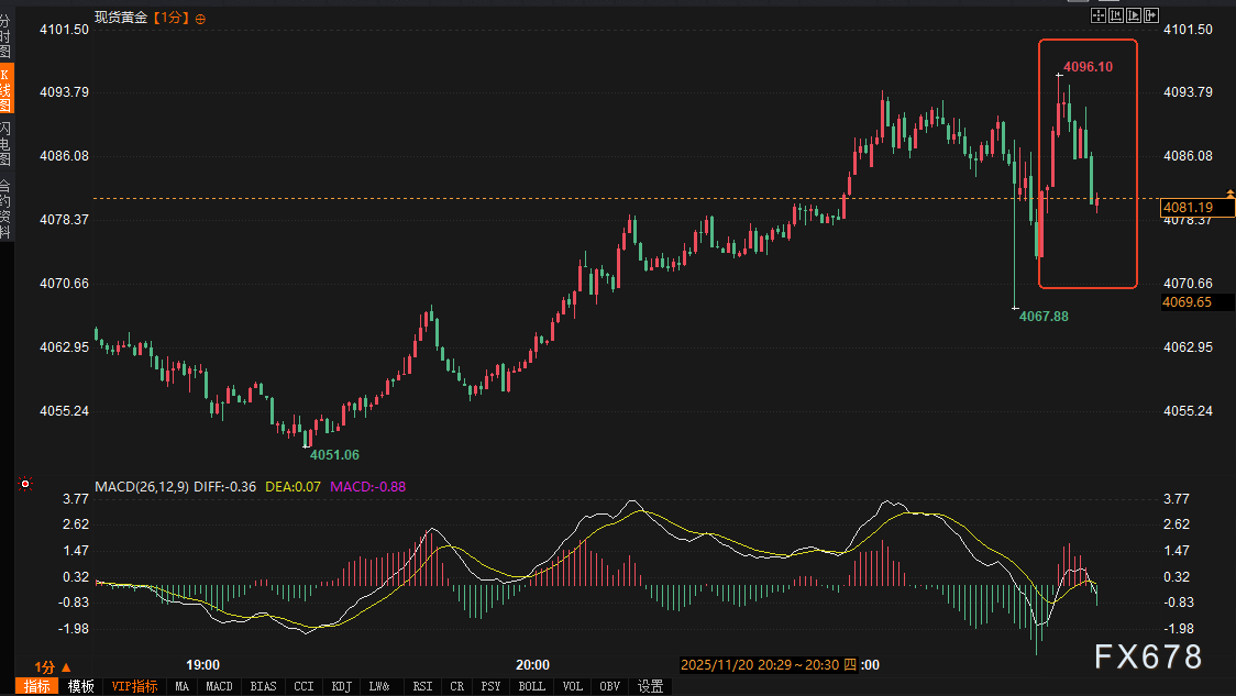 汇通财经APP讯——周五(北京时间11月21日)亚市早盘,现货黄金交投于4082.30美元/盎司附近,金价周四承压下行,受美国9月就业数据强劲影响,美联储12月降息的可能性减小;美原油交投于58.64...