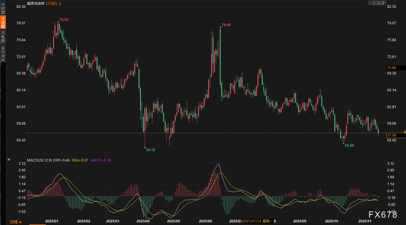 这一转变的核心驱动力来自于华盛顿方面突然加速的地缘政治动作——美国总统特朗普强力推动的俄乌和平协议谈判,极大地改变了市场对俄罗斯原油供应前景的预期。与此同时,美元指数攀升至半年高位,以及美联储货币政策的不确定性,进一步抑制了风险资产的吸引力。原油多头在本周遭受重创,WTI原油不仅失守60美元心理关口,更逼近58美元一线,布伦特原油亦同步下挫。市场避险情绪虽浓,但这种避险并未流向大宗商品,反而体现为对现金(美元)的追逐。