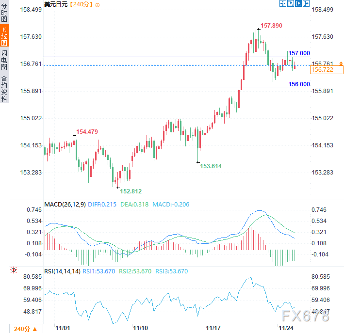 汇通财经APP讯——11月24日,星期一。当前北美时段美元兑日元于156.80水平附近运行,市场整体处于政策预期博弈与宏观数据交织影响的敏感阶段。近期全球外汇市场的主线逻辑并未发生根本性转变,美元仍受...