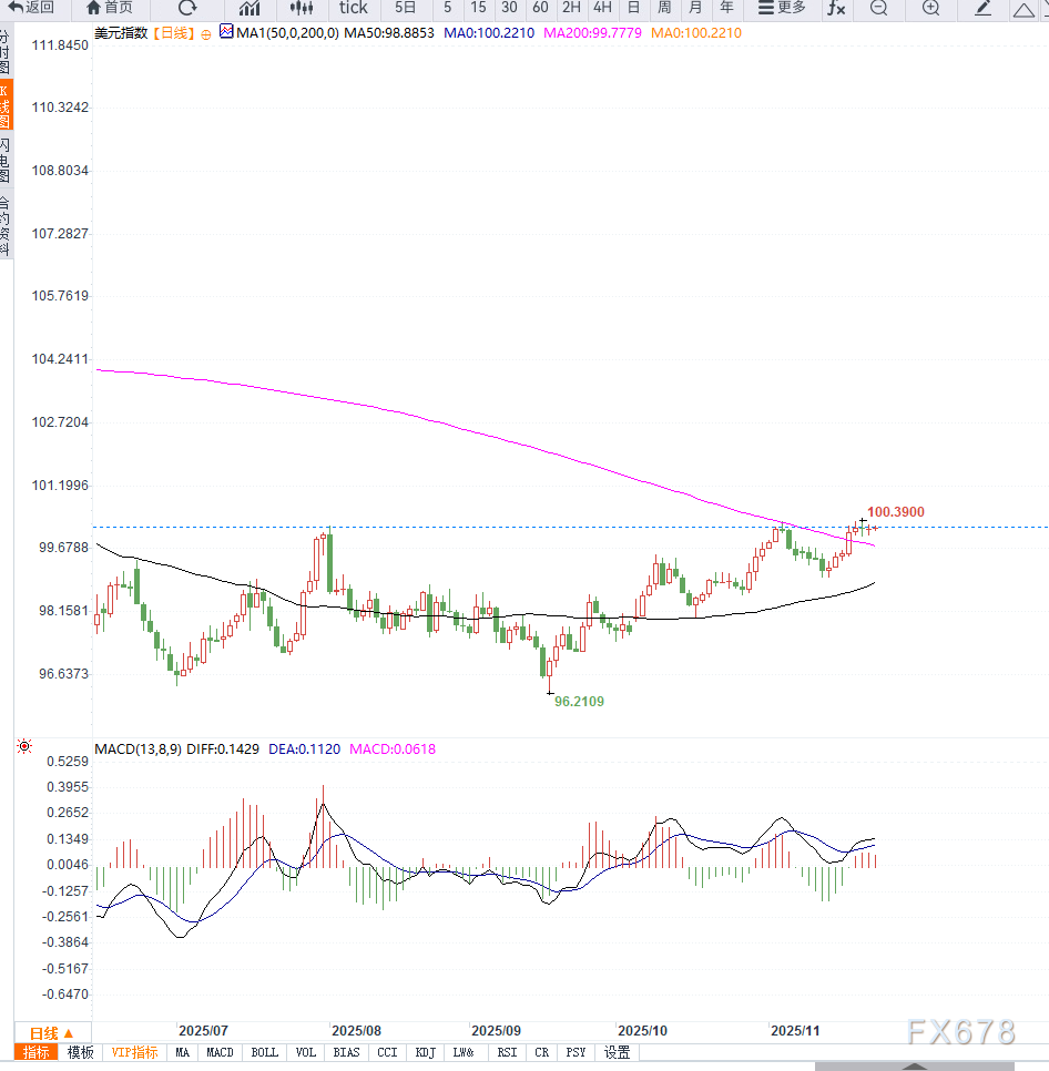 汇通财经APP讯——美元指数(DXY)在周二亚洲时段维持弱势,围绕100.15低位震荡。市场对美联储12月降息的预期急剧升温,使美元整体缺乏反弹动能。